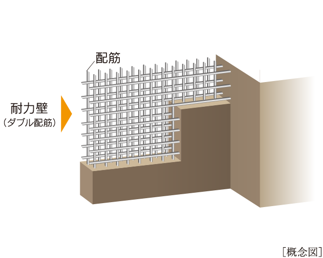 建物は、真上からの重さには、柱で支えることが出来ますが、横からの力には非常に弱いものです。地震時の横揺れや台風などの横風ですが、当該物件はこうした横からの圧力に強い耐力壁を採用しています。