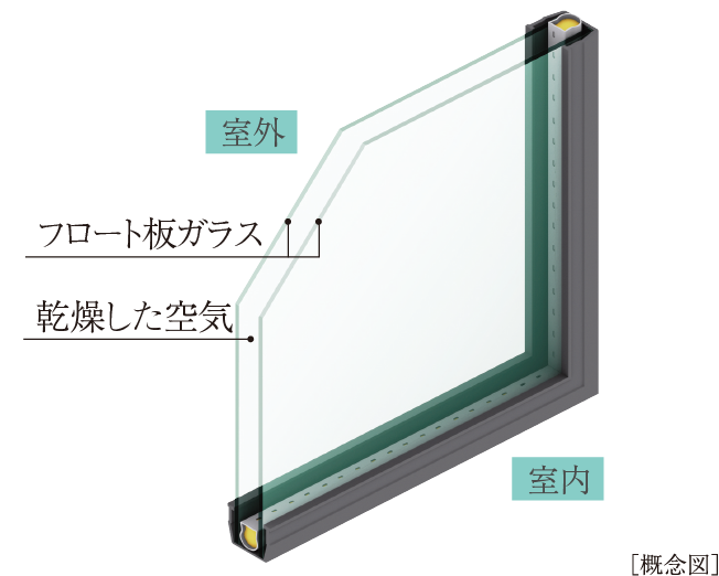 2枚の板ガラスの中間につくられた中空層によって、大きな断熱効果を発揮するペアガラスを全居室に採用。断熱・保温・遮音性能を高め、省エネ効果も発揮。プライバシーを守り、より快適な室内環境をサポートします。