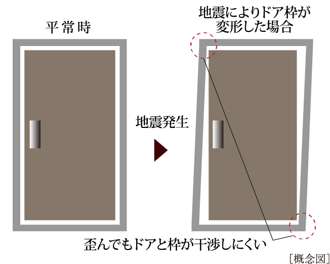 高い防犯性と耐震性を備えた安全な玄関ドア。地震時でも変形によって扉が閉ざされにくい構造です。
